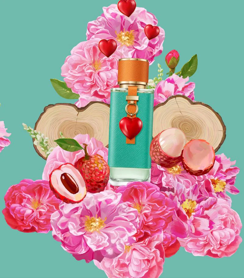 المكونات العليا: الليتشي، الجريب فروت الوردي